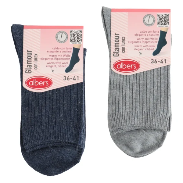Elegant lurex ribbed ladies socks with cotton and wool. Warm, soft and comfortable.