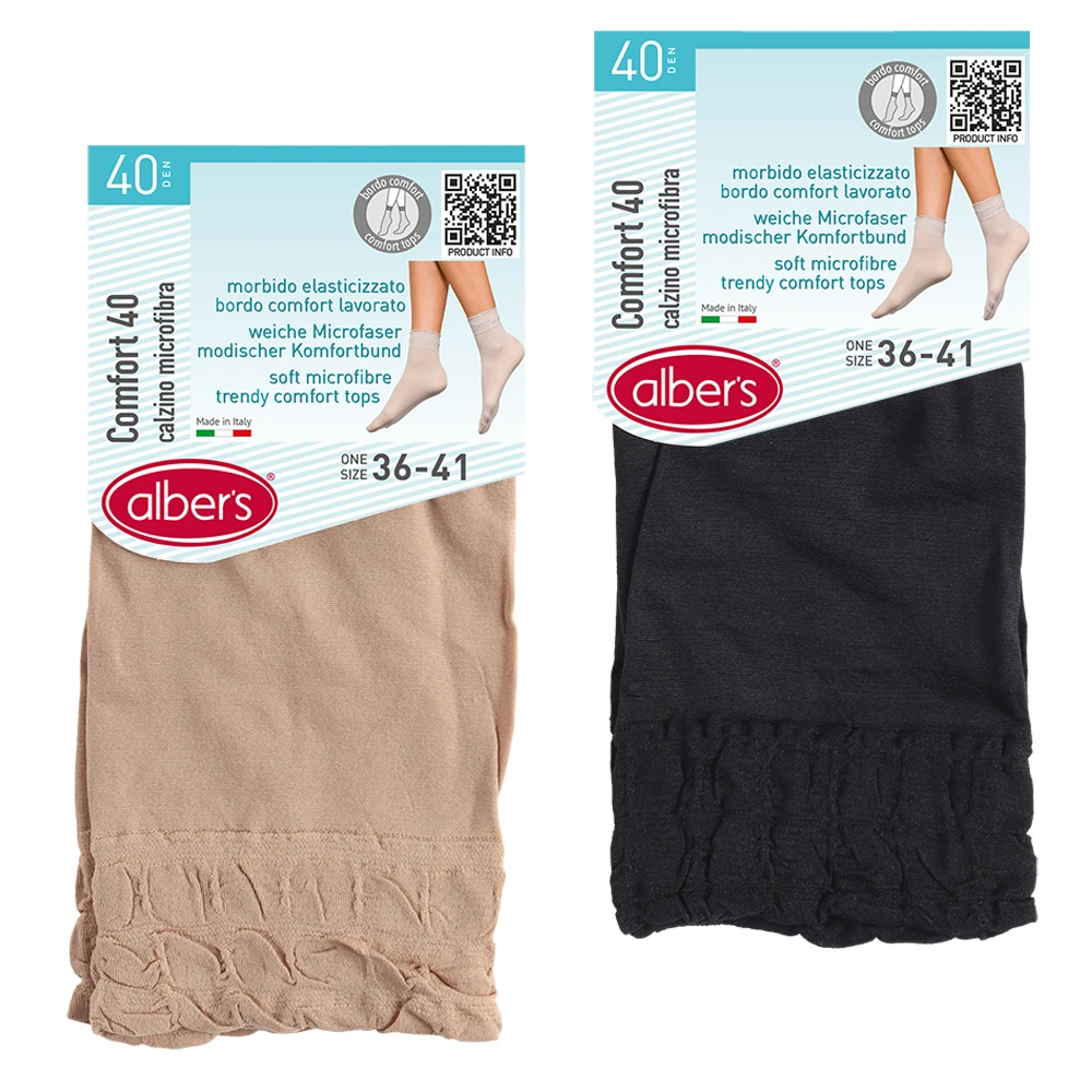 Ankle high in soft microfibre with trendy comfort tops. Matt appearance 40 den.