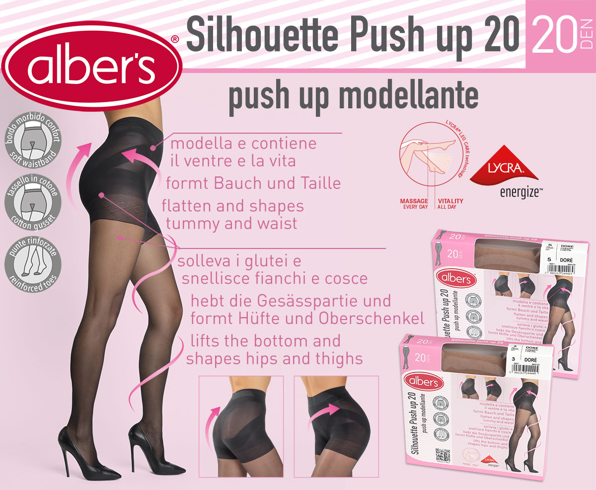 Elegant pantyhose 20 den matt appearance made with LYCRA® fiber. With control top panty to lift the bottom, flatten the tummy, slim the waist and shape hips and thighs. With cotton gusset, flat seam and soft comfort waistband.
