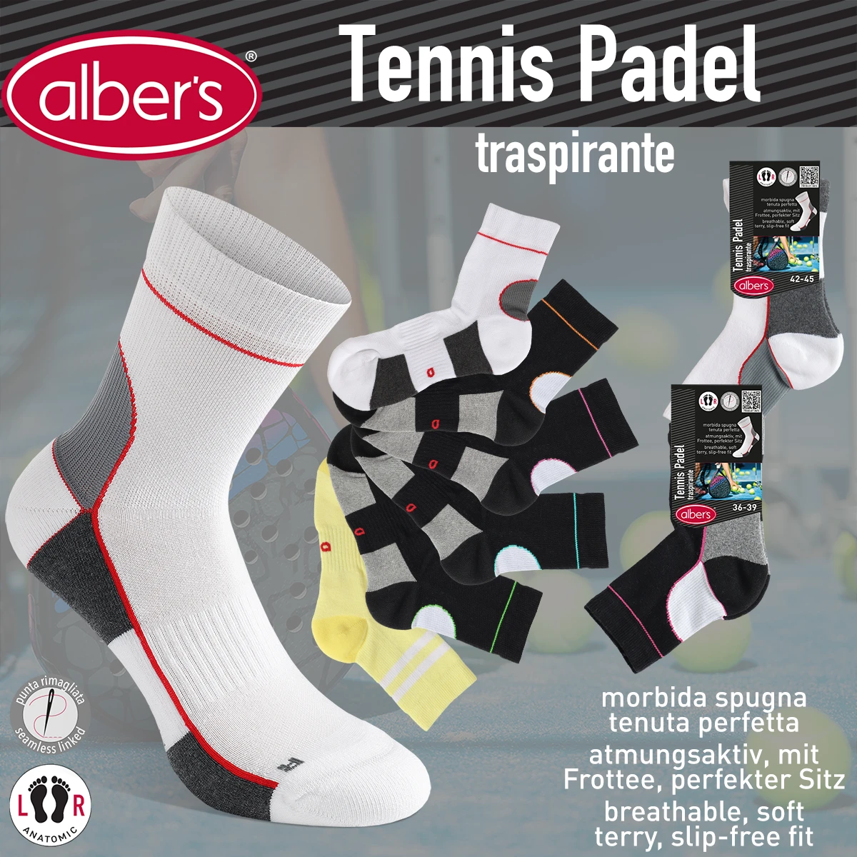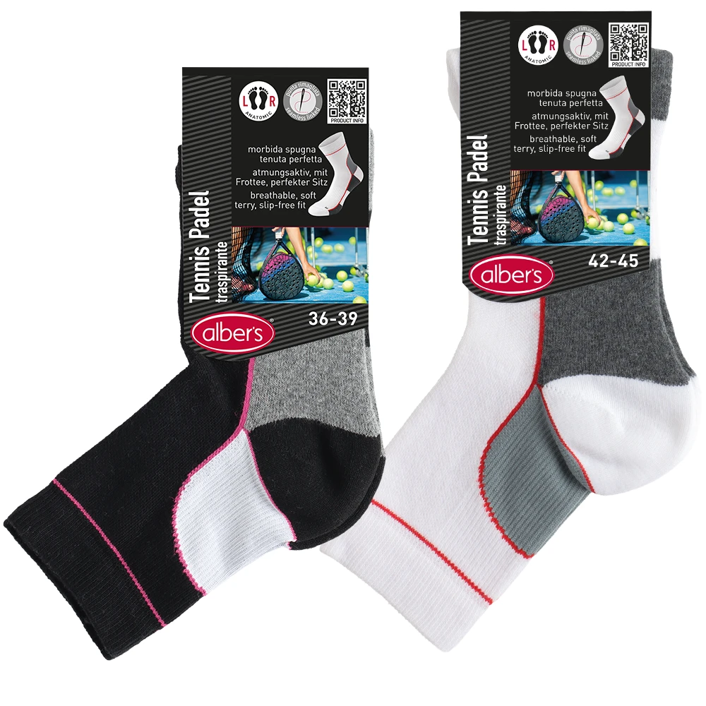 Padel socks with highly elastic zone for stabilizing the ankle area – toe, heel and sole in soft terry to prevent pressure points – open mesh area for optimal air circulation – highly elastic zone for a slip-free fit – anatomical left/right foot design for a perfect fit.