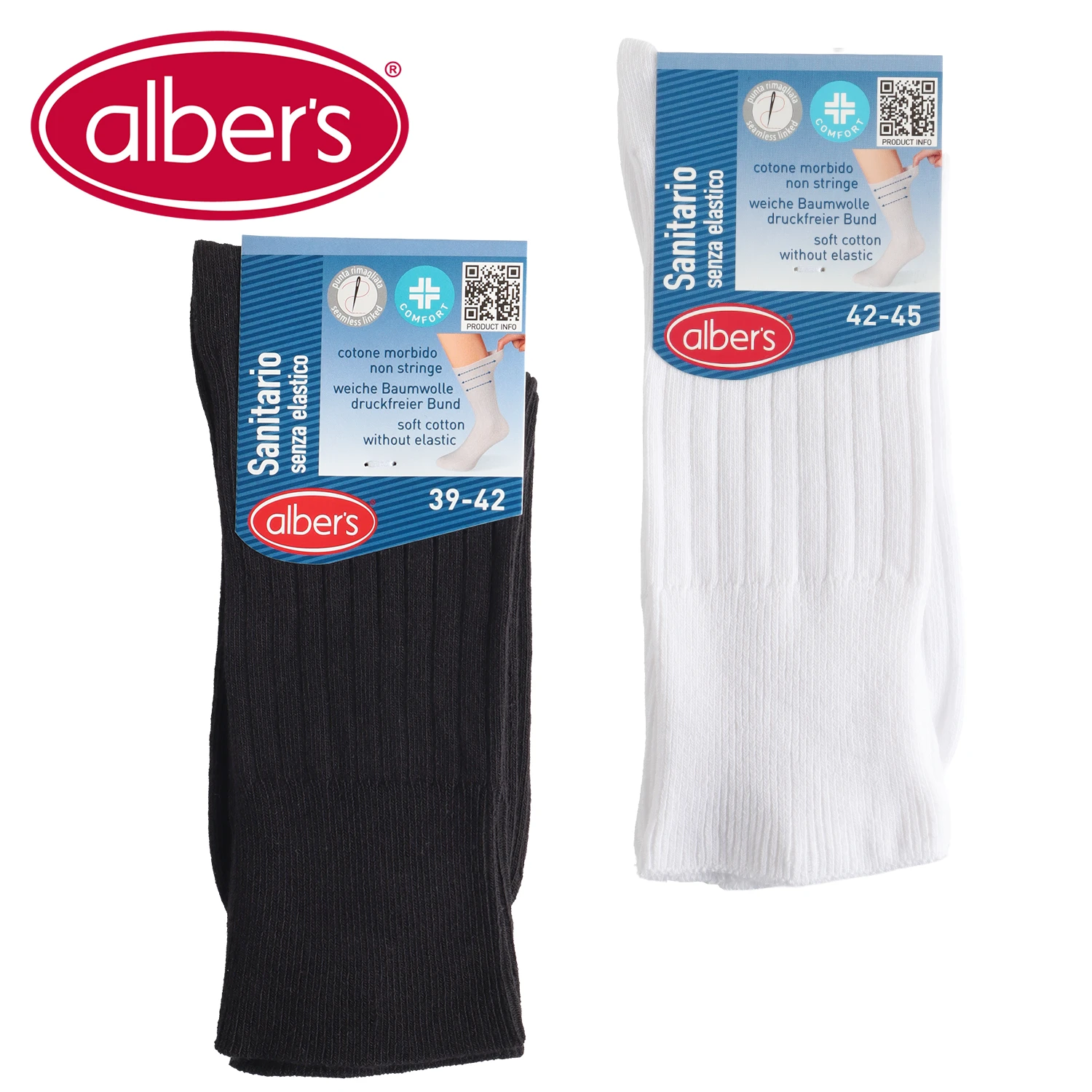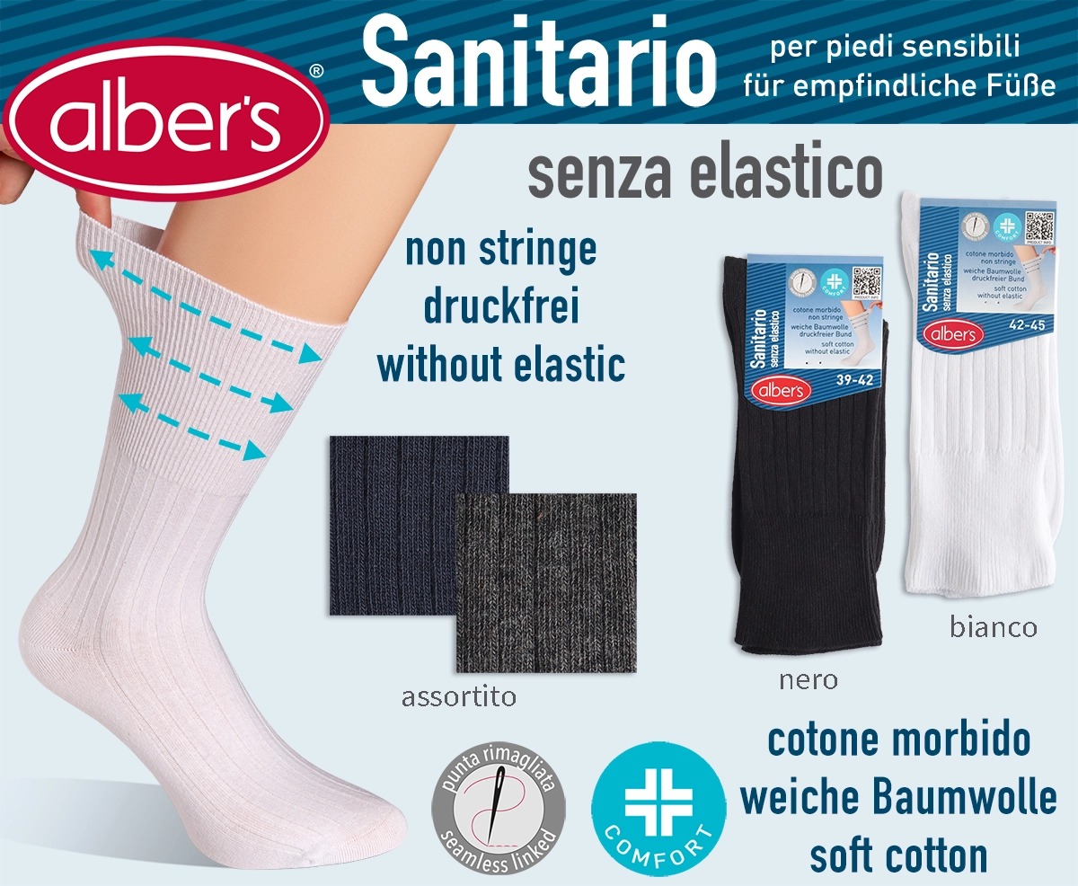 Calzino uomo sanitario in morbido cotone – ideale per piedi sensibili. Con polsino senza elastico che non stringe e non scivola.
